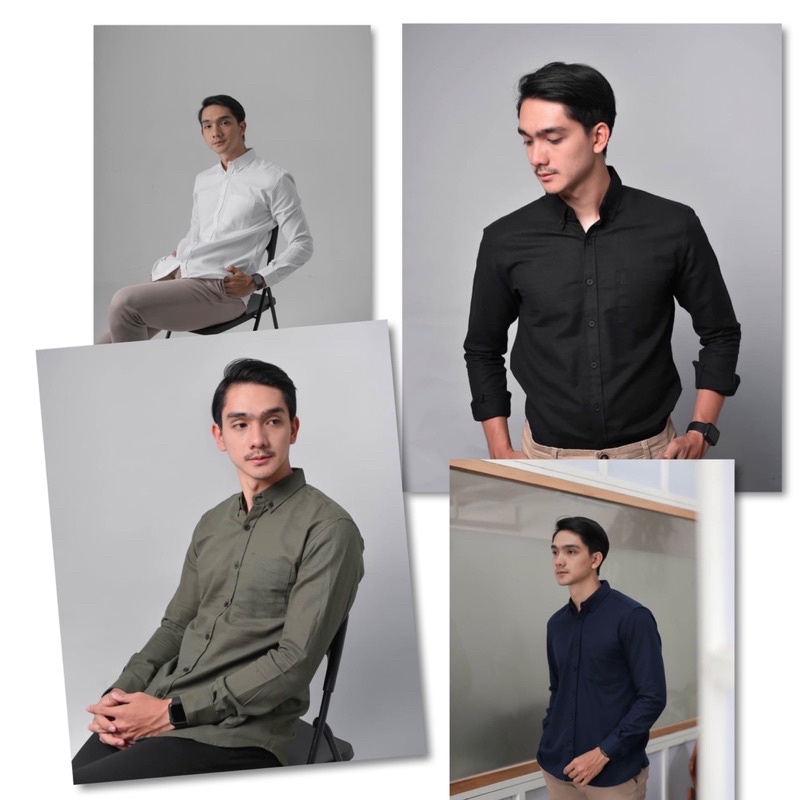 Jual Kemeja Cowok Pria Hem Tangan Panjang Polos Terbaru Kekinian Masa Kini Hitam Putih Nevy Hijau Shopee Indonesia